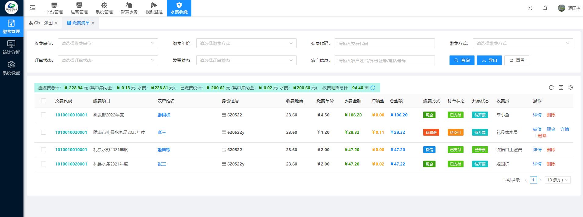 | 臨洮縣灌區(qū)收費系統(tǒng) |