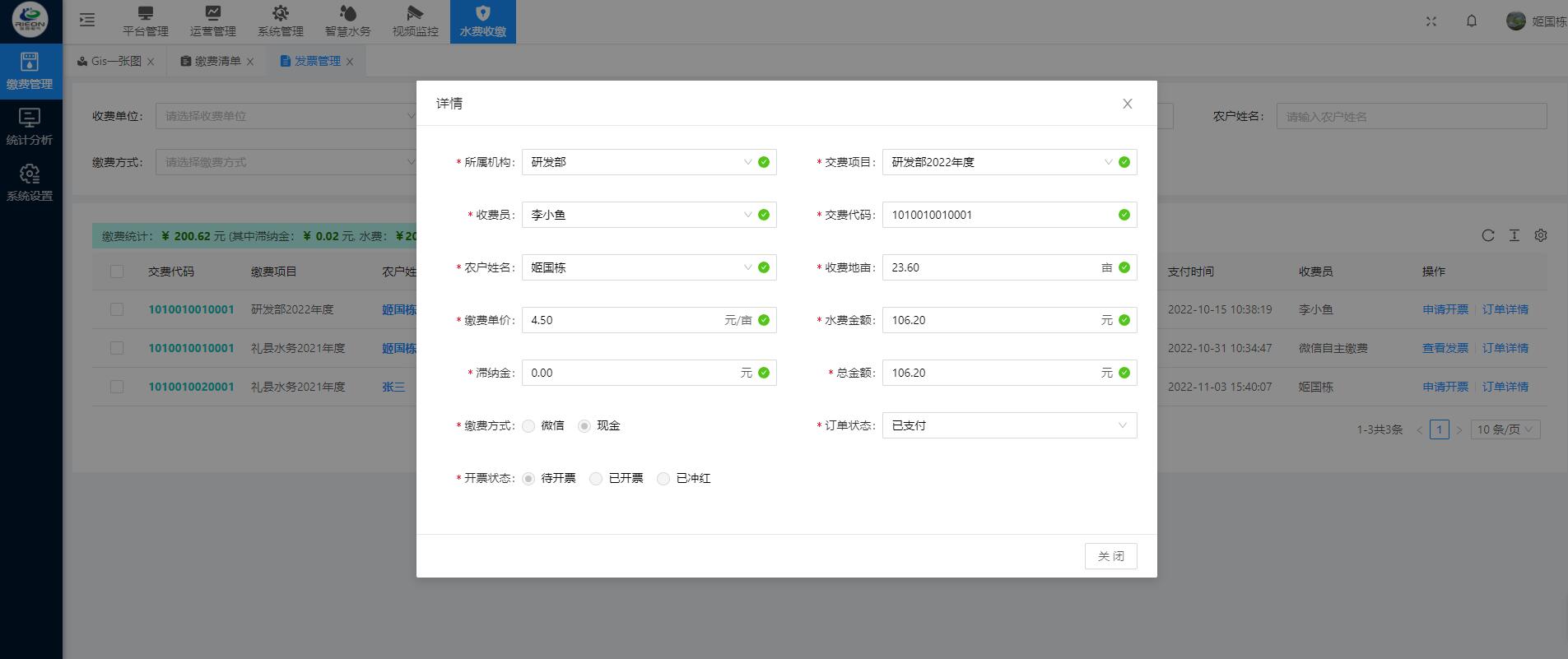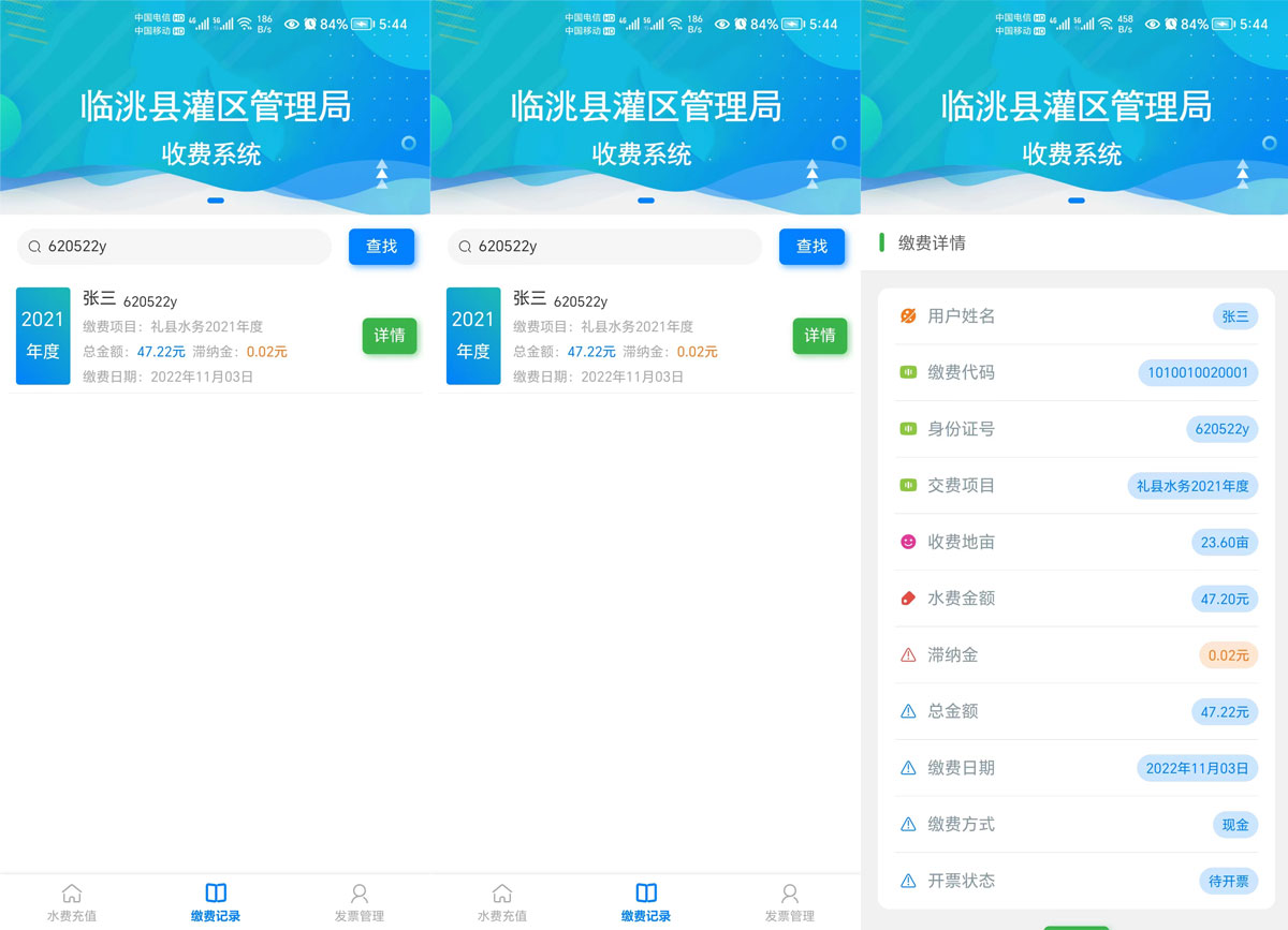 灌區(qū)收費系統(tǒng)運用計算機應(yīng)用技術(shù)以及相關(guān)的專用分析軟件和通訊網(wǎng)絡(luò)所組成的一個綜合性的收費系統(tǒng)。通過對流經(jīng)用水戶的灌溉 時間以及流量的輸入,計算出該用水戶的水費,生成收費賬單提交至上級審核 ,審核通過即可在線繳費以及他人代繳功能。管理單位可以在手機和電腦網(wǎng)頁上同步查詢相應(yīng)的用水量以及繳費情況。